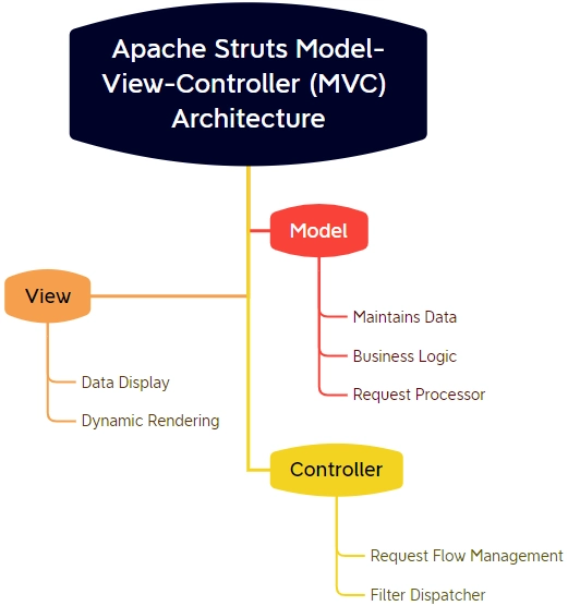 Apache Struts is a well-known open-source framework used to create Java-based web applications. It is based on the Model-View-Controller (MVC) design pattern, which divides the application into three distinct components: the model, the view, and the controller.