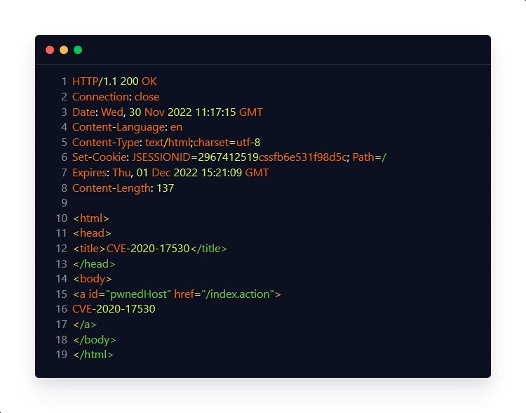 | setHeader(“X-Cmd-Response”,#a) | This payload snippet is used to generate a custom HTTP response header, ‘X-Cmd-Response’, whose value is the output of the executed command. |