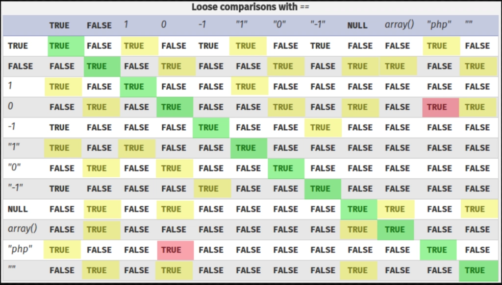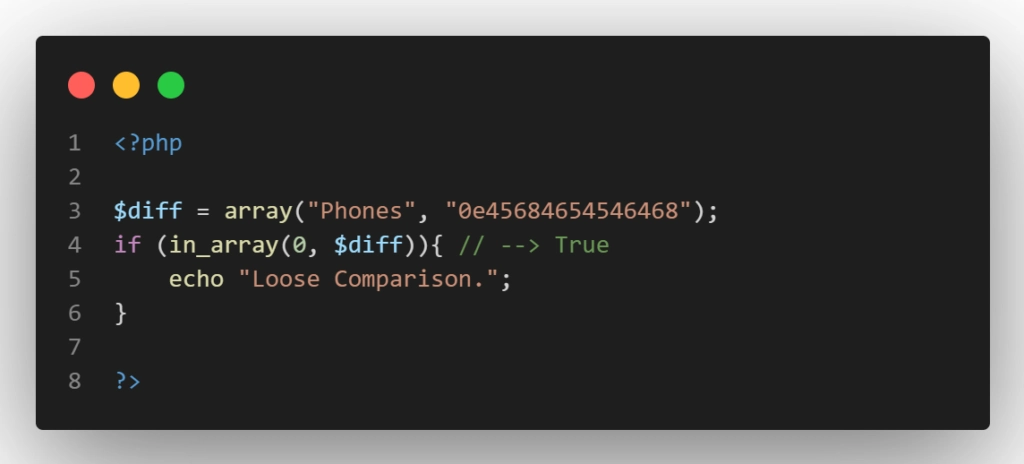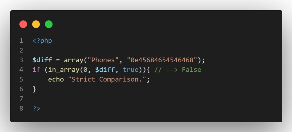 For instance, PHP’s in_array() by default employs loose comparison. But, if you specify the strict option, it will switch to type-safe comparison.