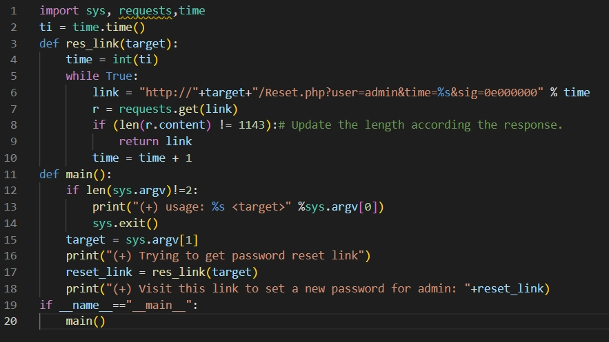 Now that we are aware that the non-working link’s response length is 1143, we can use it to find the right link. To brute force, we must design an exploit that uses a loop to send the various requests to the server with an increasing value of time until the response length changes.