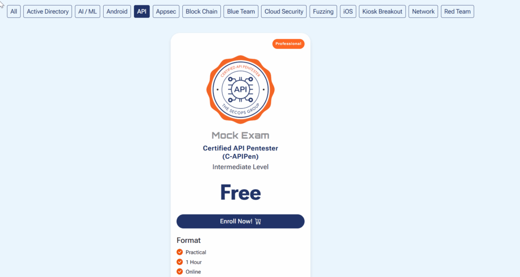 The full syllabus for the exam is listed on the main certification page:https://pentestingexams.com/product/certified-api-pentester/