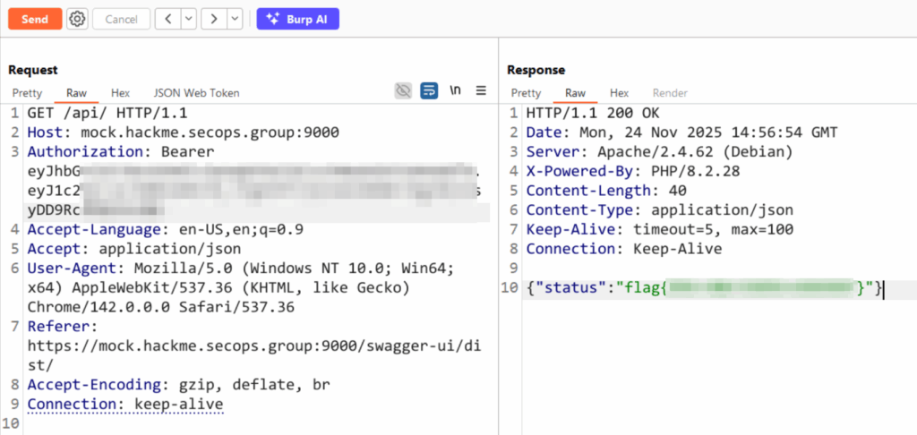 After sending the new admin token through Burp Suite, the API finally returned the flag –  and also a discount! 😄