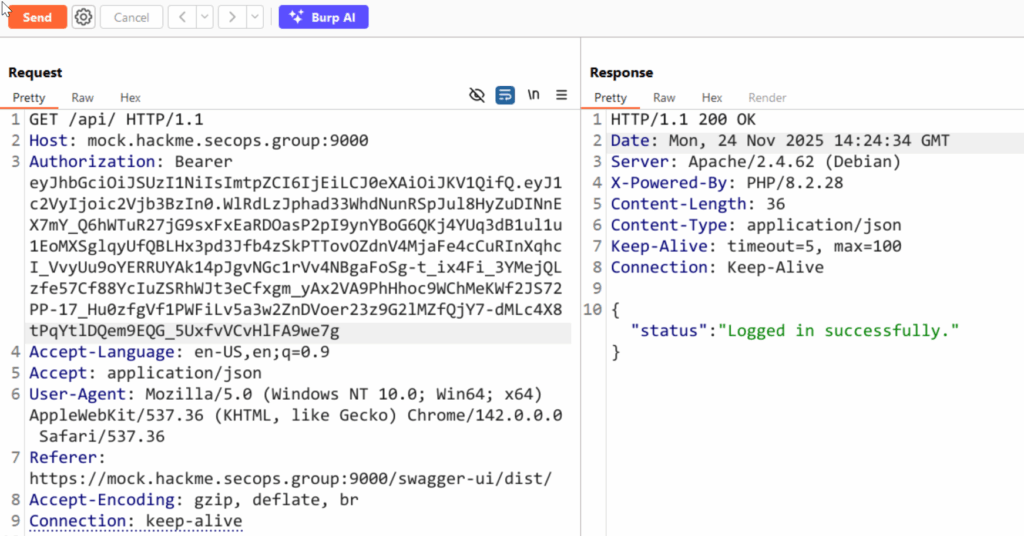 To put these testing concepts into practice, let’s walk through the solution for the Certified API Pentester Mock Exam from PentestingExams. This single, one-hour challenge focused entirely on exploiting a JWT vulnerability for privilege escalation.