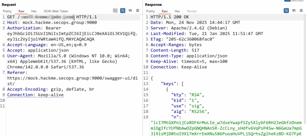 Following the Portswigger’s guide, I checked the well-known endpoint and found the public key.