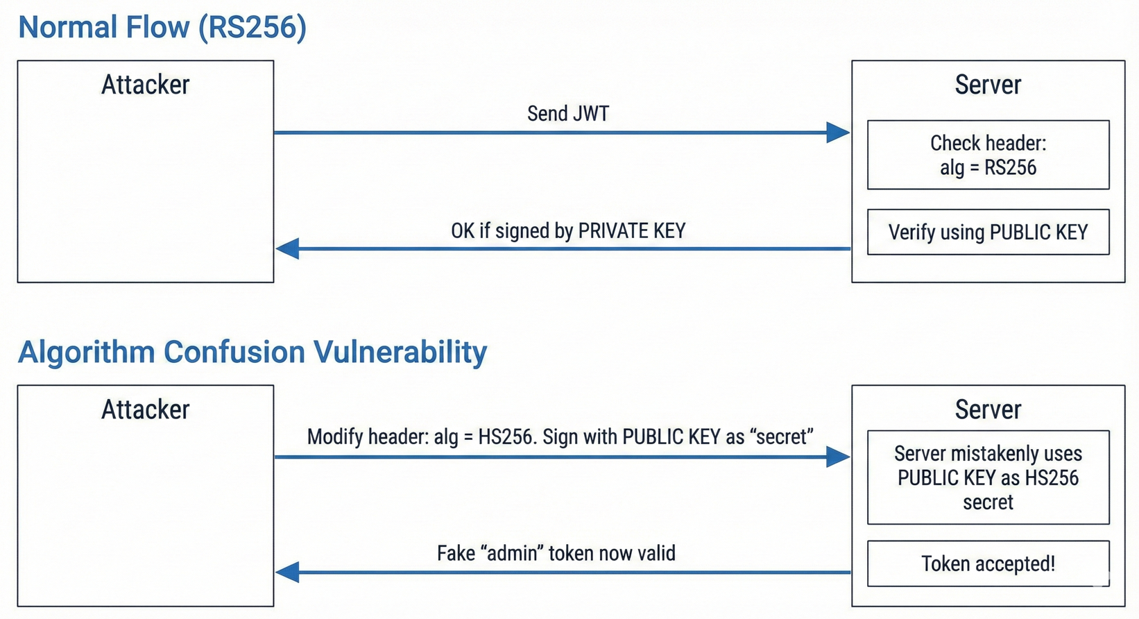 Common Attacks: These include the “None” algorithm bypass, key injections via the kid parameter, and Algorithm Confusion.